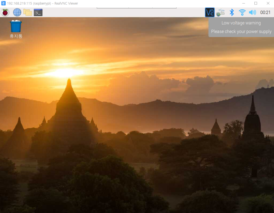 Wifi는 우상단에 있는 wifi 버튼을 누르신 후 설정이 가능합니다. 전 지금 5V 2A 짜리 아답터에 연결을 해 놔서 그런지 Low Voltage warning 이 뜹니다. 꼭 3A 이상을 사용하시기 바랍니다.