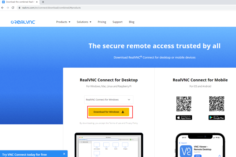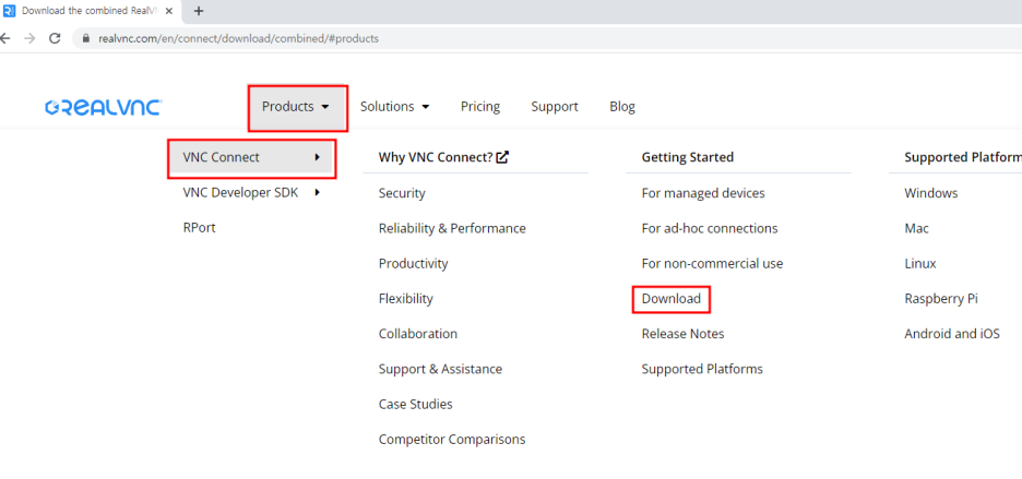 여기에서 Product>VNC Connect>Getting Started > Download 에 가시면