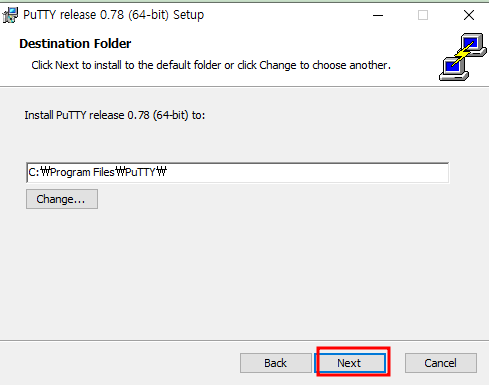 그러면 윈도우 창에서 보면 아래와 같이 PuTTY를 보실 수 있습니다.
