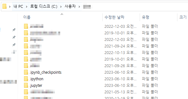 주피터 노트북을 실행하면 처음 나오는 화면의 폴더 위치가 어디일까요?