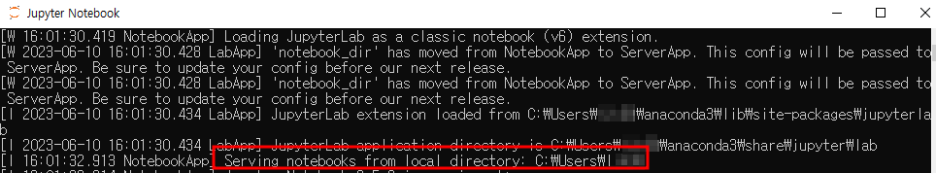 잘 모르겠으면 주피터 노트북을 실행하면 뜨는 검은색 창 기억하시나요?