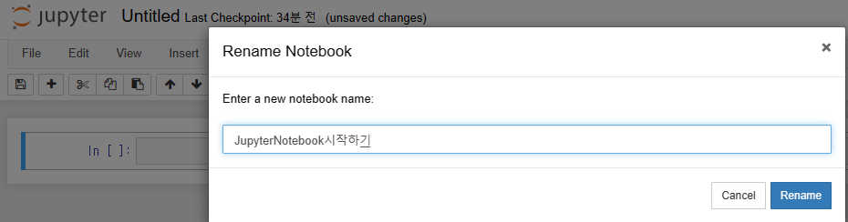 파일명을 수정하지 않으니 Untitled.ipynb 라고 저장되어 있습니다.