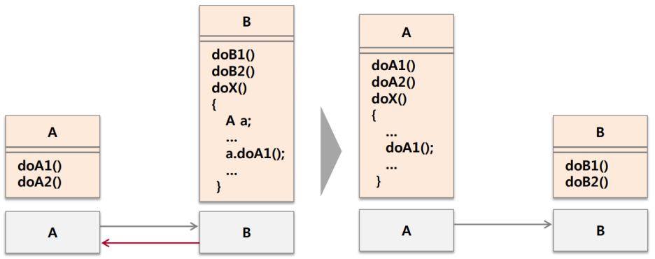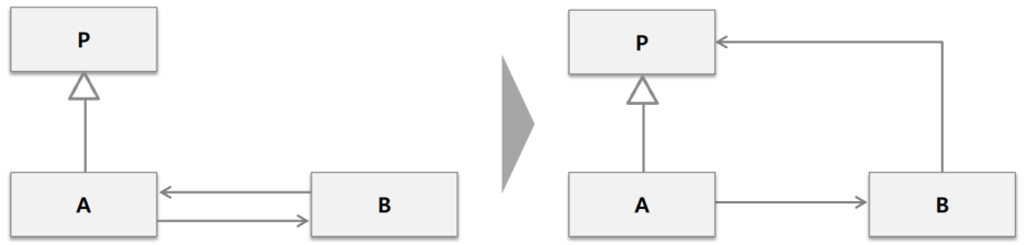 클래스 A와 B간 상호 참조가 존재한다면, A가 호출하는 모든 함수를 포함하며 클래스 B에 의해 구현되는