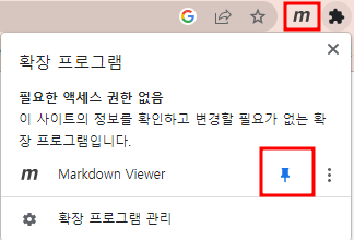 Markdown Viewer가 보이고, 오른쪽 핀을 클릭하시면 아래와 같이 m 마크가 보여 집니다.