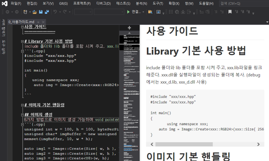 우리가 소프트웨어 개발하면서 많이 사용하는 Visual Studio에도 markdown을 편집할 수 있는 추가 기능이 있습니다.