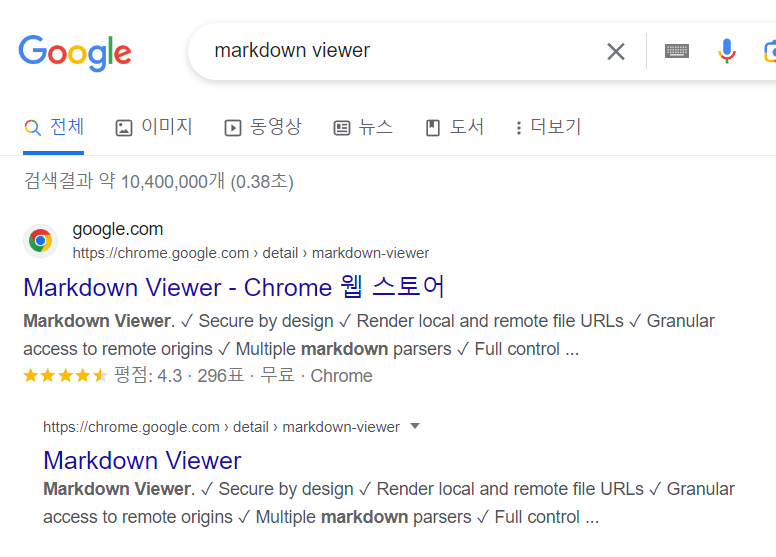 구글에서 markdown viewer를 치면 제일먼저 검색되는 것이 크롬 웹 스토어에요.