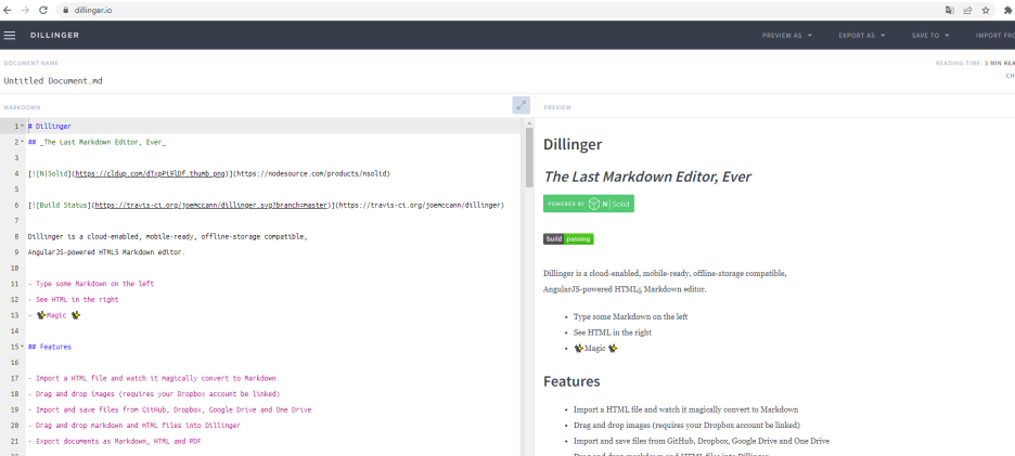 Online Markdown Editor - Dillinger, the Last Markdown Editor ever.