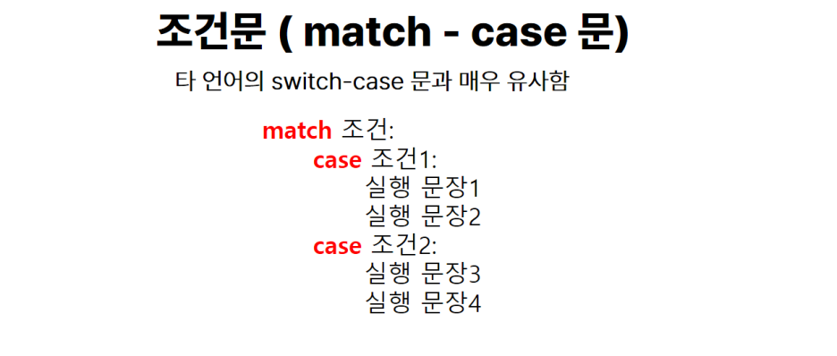 파이썬 3.10 에 match-case 문이 추가되었습니다. match-case 문은 switch-case 문과 유사하지만 다른 기능이 있어서 소개해드릴께요.