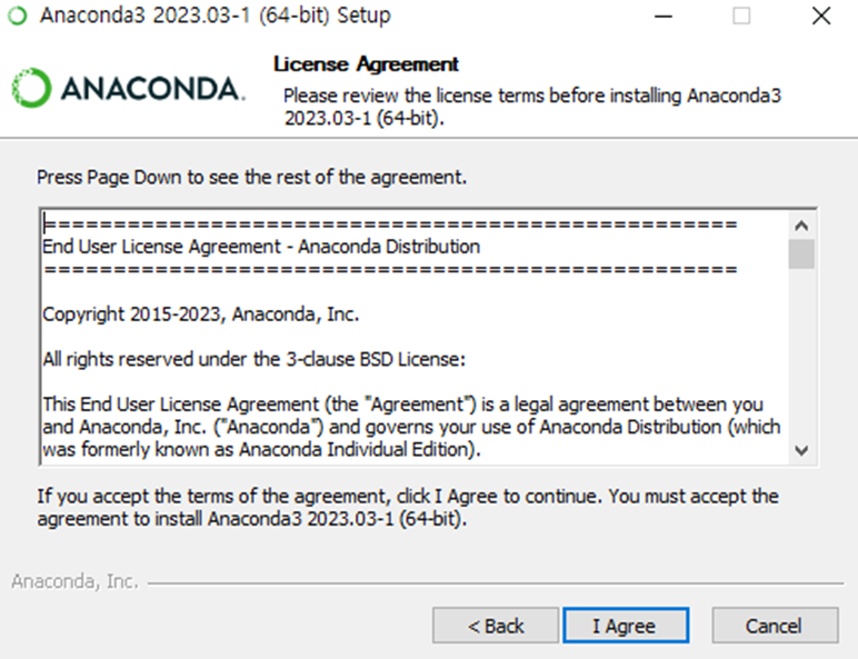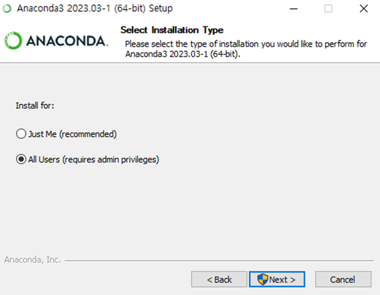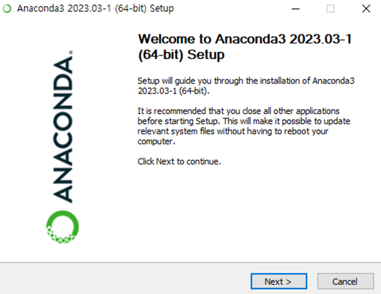 파이썬이 이미 설치되어 있다면 반드시 삭제후 설치를 해 주셔야 합니다. 파이썬 설치 상태에서 아나콘다를 설치할 경우 환경변수 충돌 등으로 문제가 발생할 수 있기 때문에 그렇습니다.