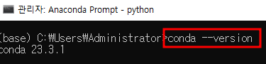 아나콘다 프롬프트 창을 열고 아래와 같이 conda --version을 치시면,
