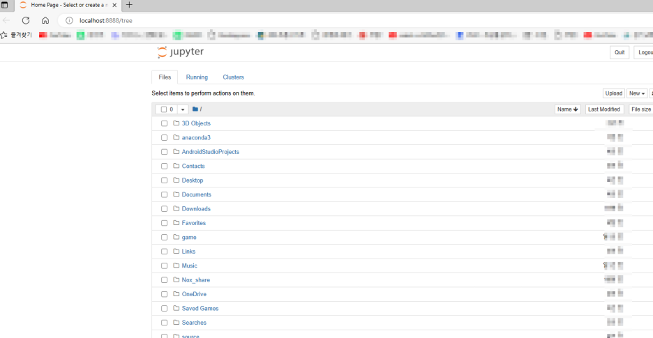 windows 창에서 Jupyter Notebook을 클릭하시면 아래와 같이 Chrome을 이용하여 Jupyter Notebook이 뜹니다.