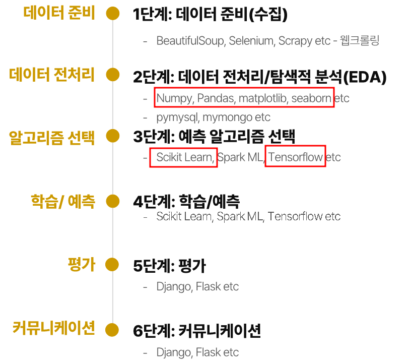 지난번에 데이터 분석에 대한 개요를 알아보면서 데이터 분석 단계를 한번 정리해드렸습니다. 이번에는 데이터 분석 단계별 사용가능한 파이썬 패키지에 대해 알아볼까 합니다.
