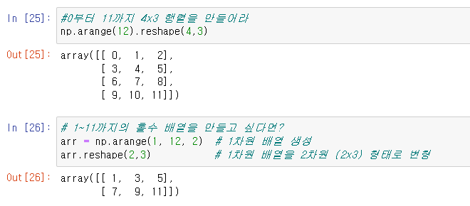 - a: 배열이면 원래의 데이터, 정수이면 arange(a) 명령으로 데이터 생성