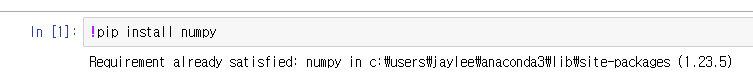 그런데 저는 numpy가 설치되어 있어서 위와 같은 메시지가 나왔습니다.