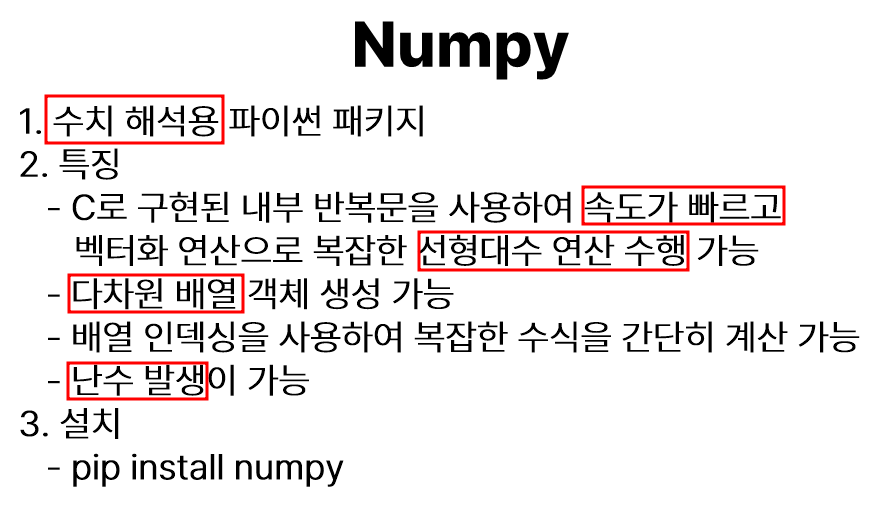 Numpy를 사용하기 위해서는 먼저 import를 해야 합니다.