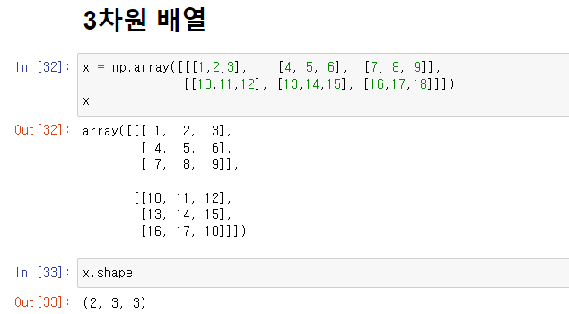 넘파이의 array 함수에 리스트를 넣으면 ndarray 클래스 객체, 즉 배열로 변환해 줍니다.