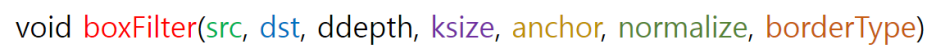 cv::boxFilter(src, dst3, -1, cv::Size(ksize, ksize));
