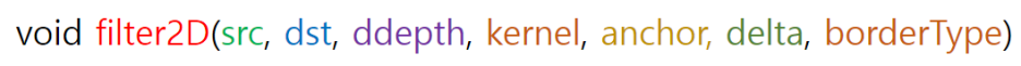 그리고 이 커널을 사용하여 filter2D() 함수로 영상에 convolution을 취해주면 되는 것 입니다.