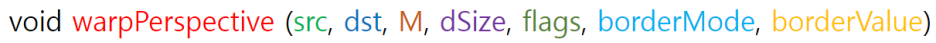 Perspective Transformation matrix를 구하는 함수 원형은 아래와 같습니다.