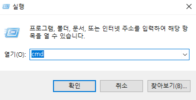 자 그럼 설치가 잘 되었는지 확인해봐야겠죠? windows 버튼 + R 을 누르면 아래와 같이 실행 창이 열립니다.
