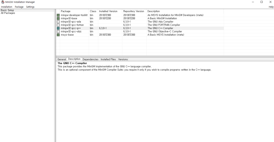 아래와 같은 MinGW 설치 관리자가 뜹니다.